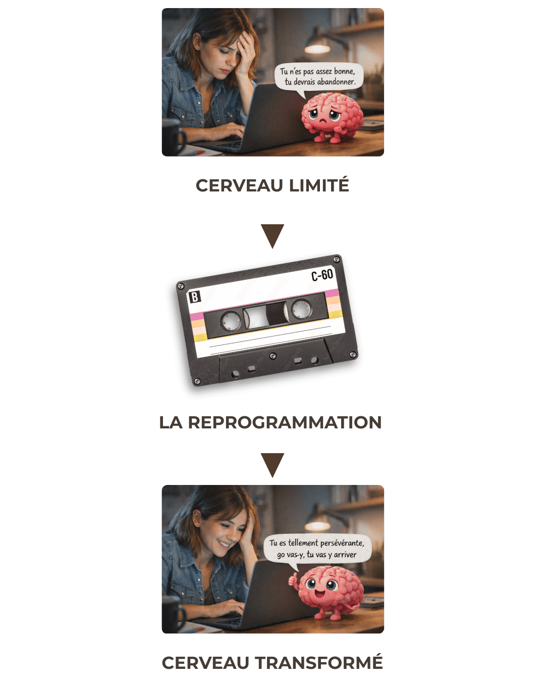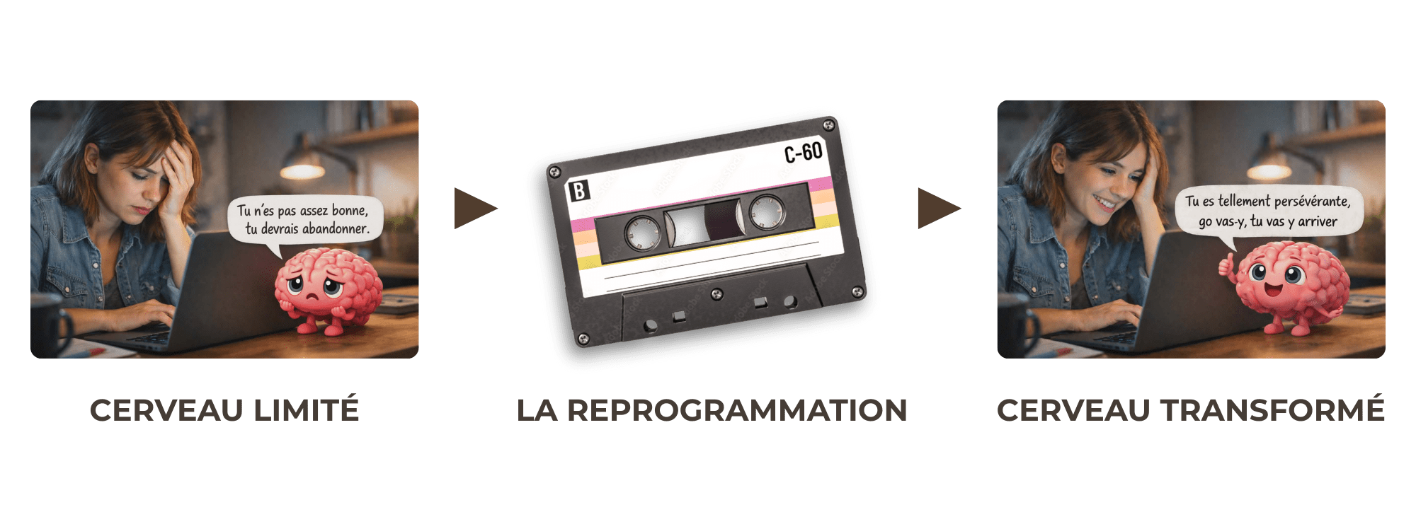 Souhaites-tu continuer à subir tes anciennes cassettes ou si tu préfères apprendre à reprogrammer ton cerveau et à bien le diriger afin d’obtenir de véritables résultats?
